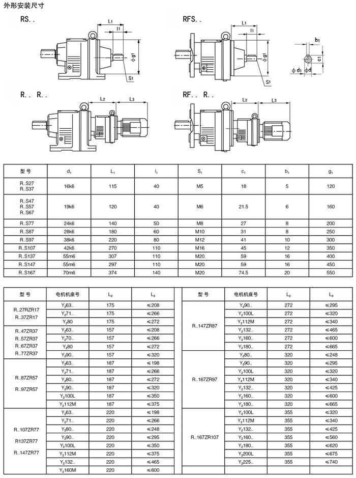 R係列斜齒(chǐ)輪減速機(jī)是高度模塊化設計,可以方便地配用各種形式(shì)的電動機或采用其它動力輸(shū)入。同種機(jī)型可配用多種功率的電動機。容易實現各機型間組合聯接(jiē)。